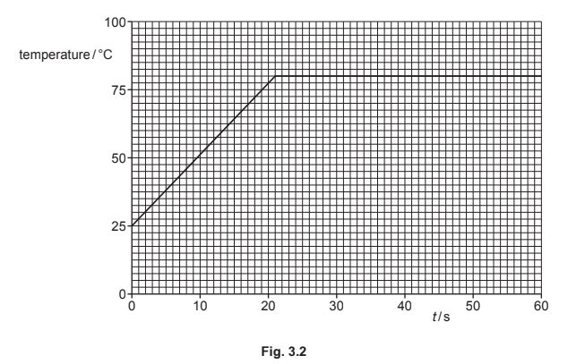 On Fig. 3.2, sketch the variation with time t of the temperature of the water between t = 0 and t = 60s. Numerical calculations are not required.