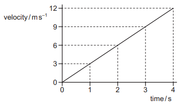 The diagram shows a velocity–time graph for an object moving in a straight line.