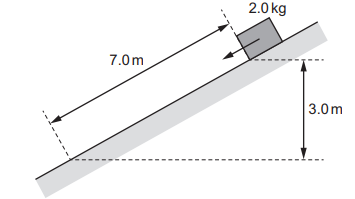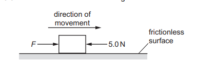 A block is moving along a horizontal frictionless surface. A constant force F and a constant resistive force of 5.0 N act on the block as it is moving in the direction of the force F, as shown.