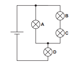 A student builds the circuit shown. All the lamps are identical. Which lamp dissipates the most power?