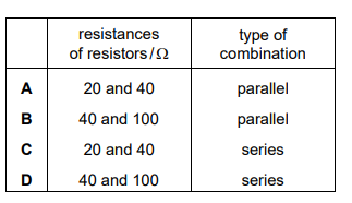 A circuit needs to be completed by connecting two resistors between points X and Y, as shown. The resistors can be connected in series or in parallel with each other.