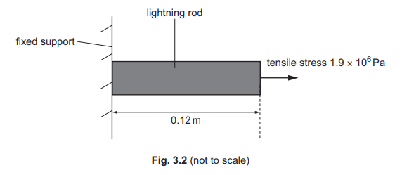 (d) A section of the lightning rod of length 0.12m is removed for testing. A tensile stress of \(1.9 × 10^6\)Pa is applied, as shown in Fig. 3.2.