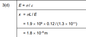 The section of the rod obeys Hooke’s law. The Young modulus of copper is \(1.3 × 10^{11}\)Pa. Calculate the extension of the section.