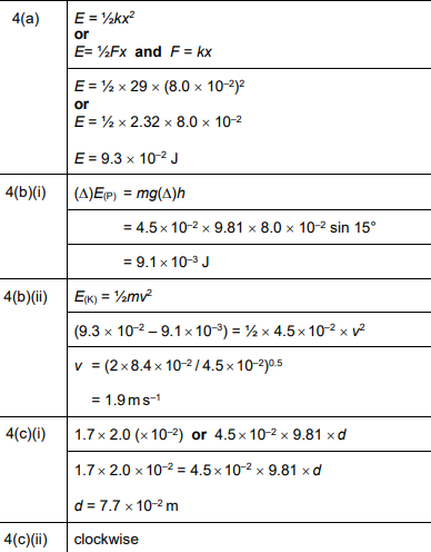 (a) The spring obeys Hooke’s law and has a spring constant of \(29Nm^{–1}\). Calculate the elastic potential energy in the compressed spring.