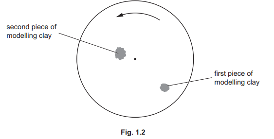 (d) A second piece of modelling clay is attached to the disc in the position shown in Fig. 1.2.