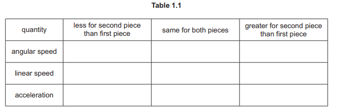 A piece of modelling clay is attached to the disc. For the instant when the piece of modelling clay is in the position shown, draw on Fig. 1.1: