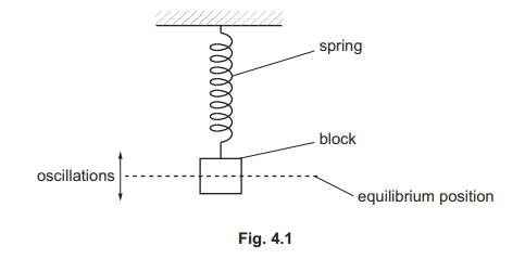 A block of mass m oscillates vertically on a spring, as shown in Fig. 4.1.