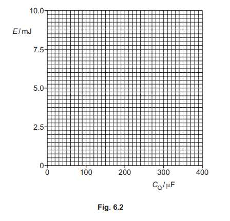 (iii) On Fig. 6.2, sketch the variation of the total energy E stored in the capacitors with \(C_Q\), as \(C_Q\) varies from 0 to 400 μF.
