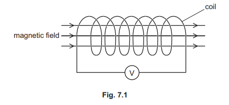 (b) Fig. 7.1 shows a coil at rest in a uniform magnetic field that is parallel to the axis of the coil.
