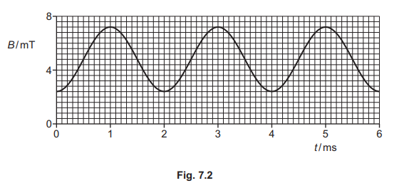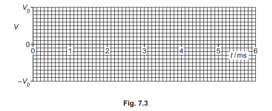 (iv) On Fig. 7.3, sketch the variation of the e.m.f. V induced across the coil with t from t = 0 to t = 6.0ms.