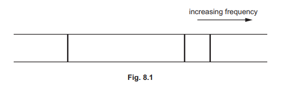 (ii) On Fig. 8.1, draw the three lines in possible positions in the spectrum seen by the observer.