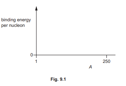 (c) (i) On Fig. 9.1, sketch the variation with nucleon number A of binding energy per nucleon for values of A from 1 to 250.
