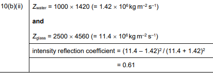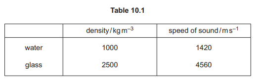 Determine the intensity reflection coefficient for ultrasound that is incident on a water–glass boundary