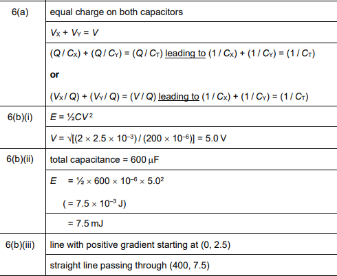 (b) Two capacitors P and Q are connected in parallel to a power supply of voltage V. The capacitance of P is 200μF. The capacitance \(C_Q\) of Q can be varied between 0 and 400μF. When \(C_Q\) = 0, the total energy stored in the capacitors is 2.5mJ.
