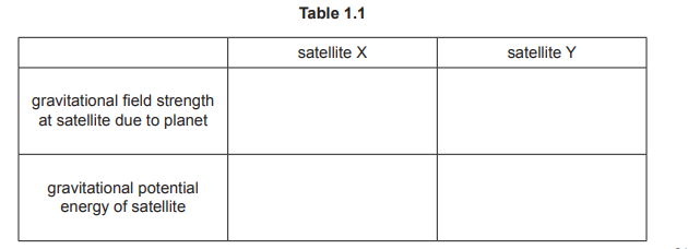 (iii) Complete Table 1.1 by giving expressions, in terms of some or all of M, R and Φ, for the quantities indicated for each of the satellites X and Y.