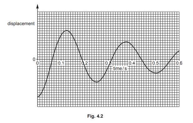 Initially, the vibration generator is switched off. A student displaces the ball vertically and then releases it. Fig. 4.2 shows the variation of the displacement of the ball with time after it is released.