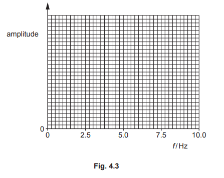 (c) The vibration generator in (b) is switched on and its frequency f of vibration is gradually increased from 0 to 10Hz. On Fig. 4.3, sketch the variation with f of the amplitude of the oscillations of the ball.