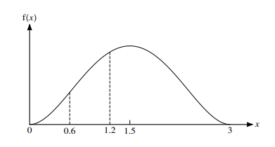 The diagram shows the graph of the probability density function, f, of a random variable X that takes values between $x=0$ and $x=3$ only. The graph is symmetrical about the line $x=1.5$.