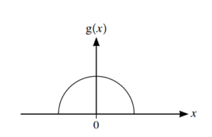 The graph of the function g is a semicircle, centre (0, 0), entirely above the x-axis.