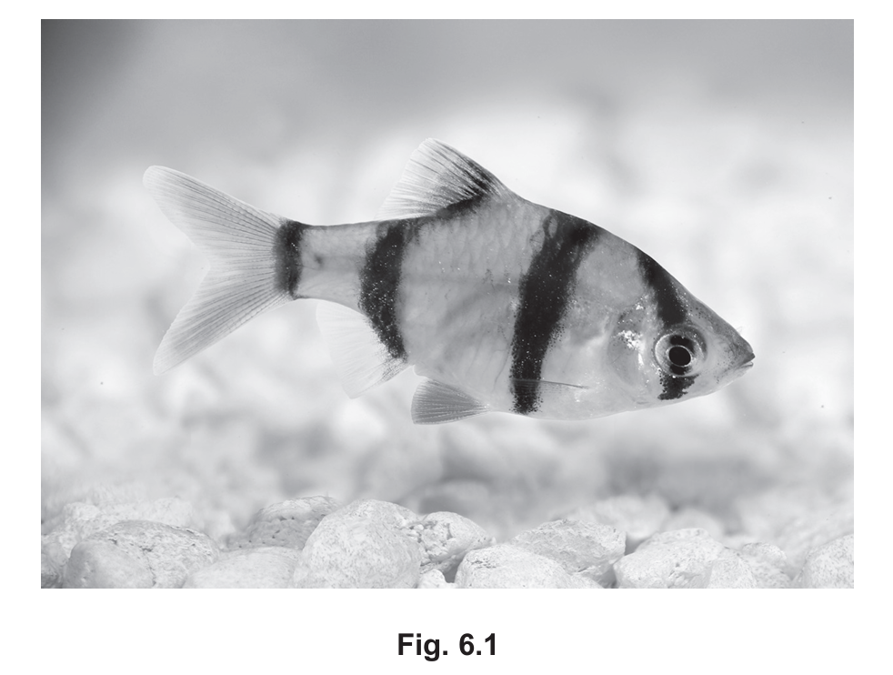 The tiger barb, Puntigrus tetrazona, is a South American fish that is popular worldwide as an aquarium fish. Fig. 6.1 shows the appearance (phenotype) of a normal (wild-type) tiger barb.