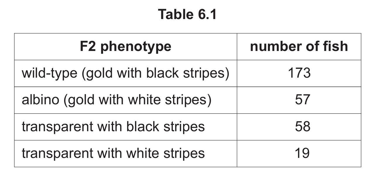 Table 6.1 shows the phenotypes obtained in the F2 generation and the number of fish showing each phenotype.
