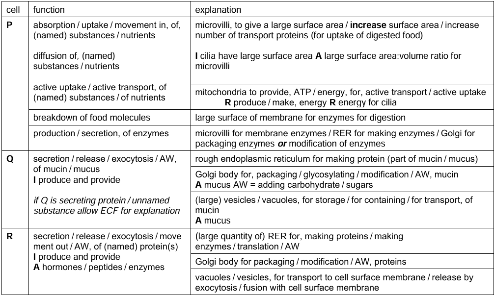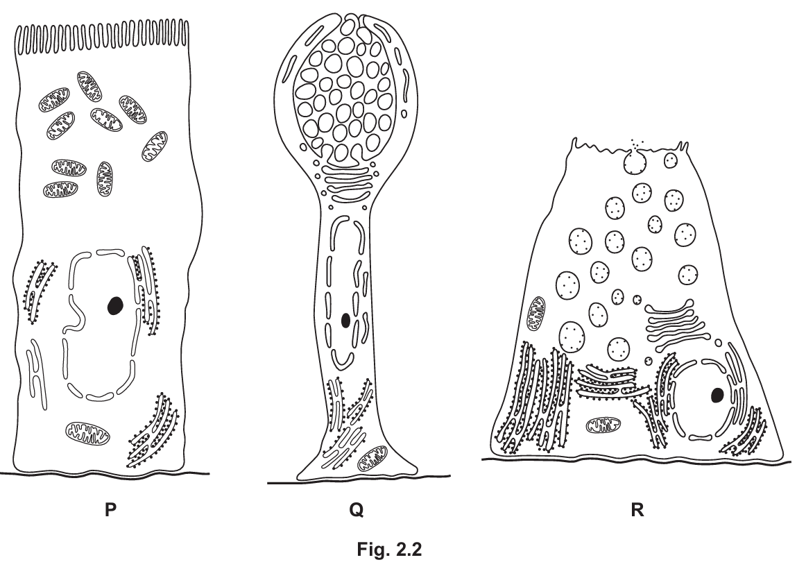 (c) Fig. 2.2 shows three types of specialised cell that develop from Lgr5+ stem cells in the small intestine.