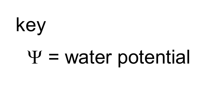 Which diagram shows the correct direction of net water movement between the four cells due to osmosis?