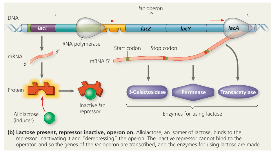 - Lactose (actually its isomer allolactose) acts as an inducer.