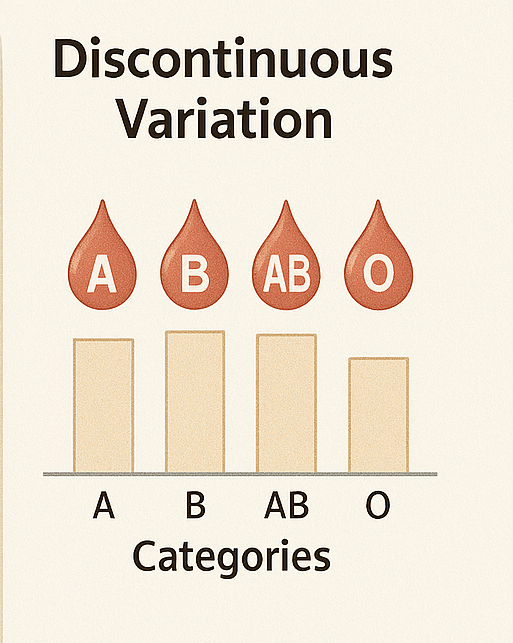 - Definition: Variation where individuals fall into distinct categories with no intermediates.