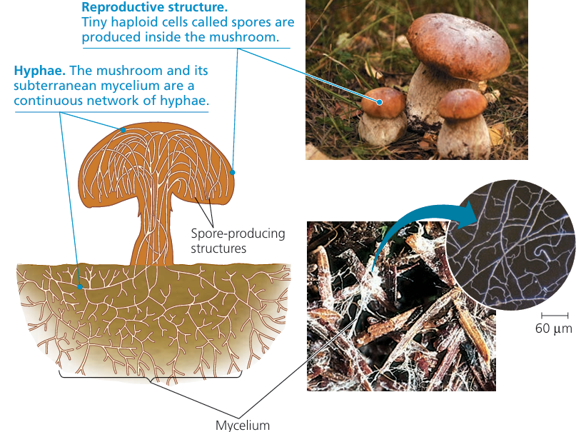 - Example organisms: Saccharomyces (yeast), Mucor, Agaricus