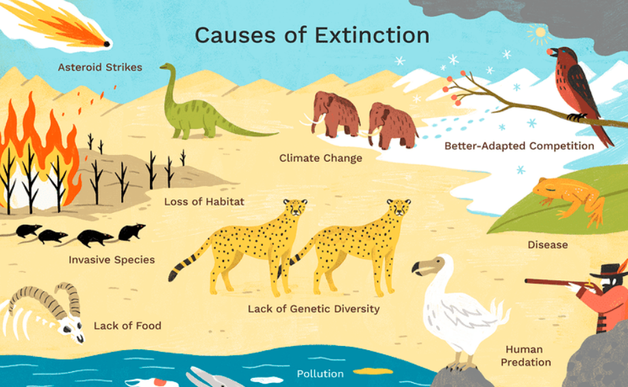 - Example: Passenger pigeons went extinct due to excessive hunting in the 19th century.