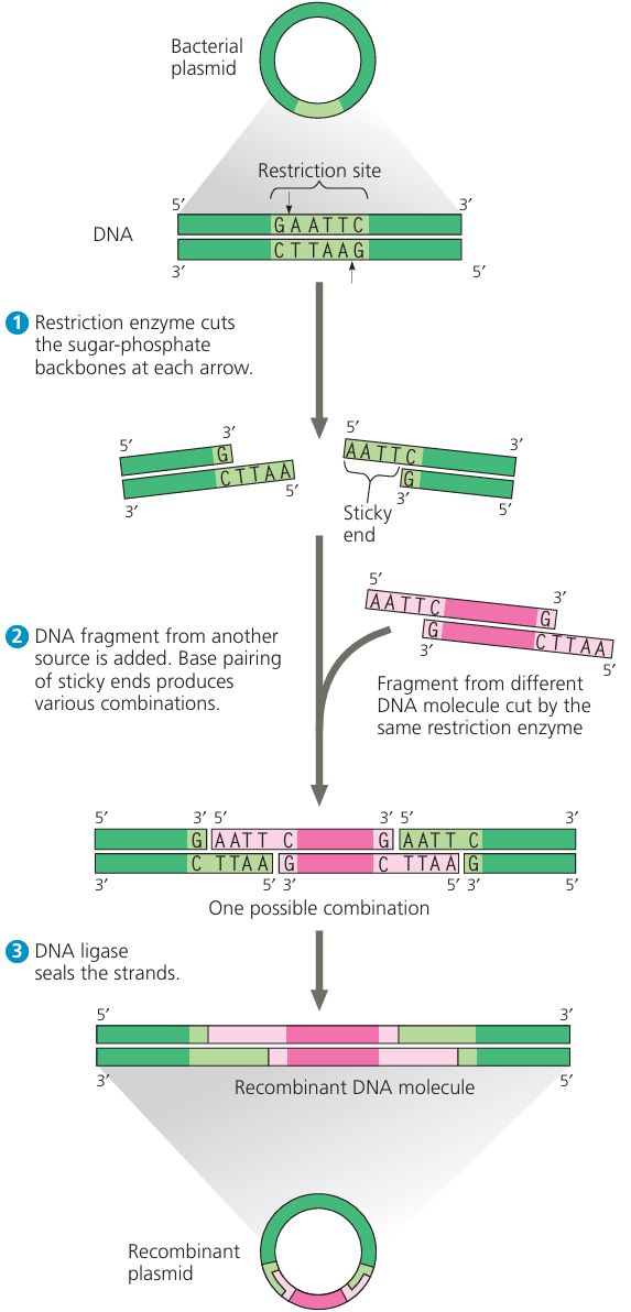 - Example: Joining the human insulin gene into a bacterial plasmid.
