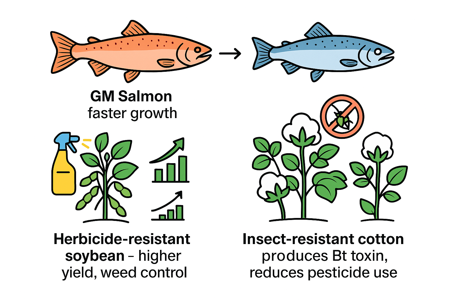 - GM animals (e.g., fast-growing salmon) may experience health or welfare issues due to genetic modifications.