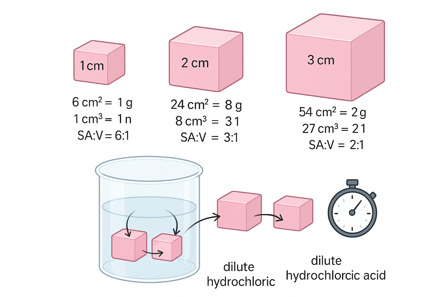 - Prepare agar blocks of different cube sizes (e.g., side lengths 1 cm, 2 cm, 3 cm).