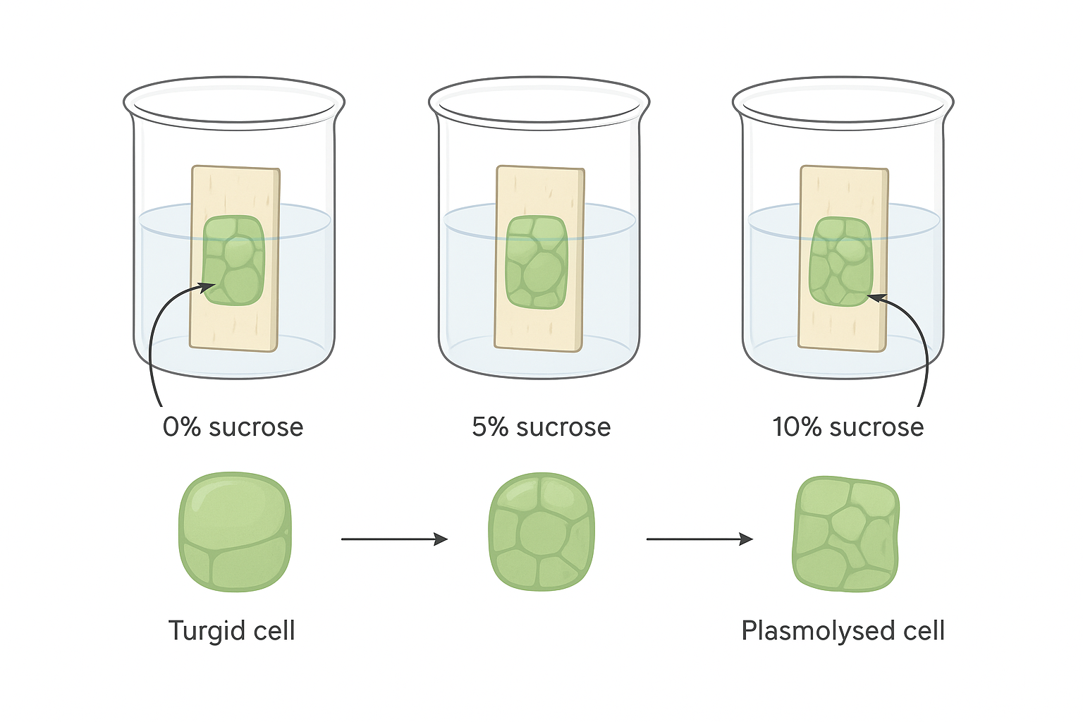 - Place each in a separate beaker/test tube with a different sucrose concentration.