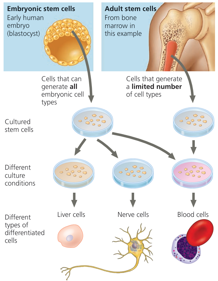 | Embryonic stem cells | Early embryo | Can differentiate into any cell type (pluripotent) |