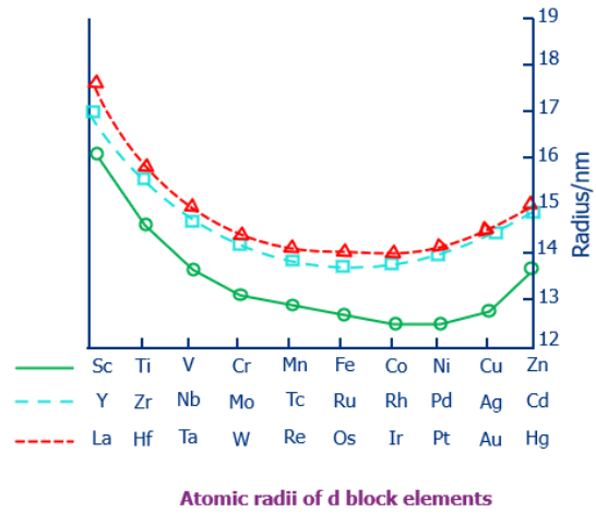 - Across Period 4 (K to Kr), the transition metals (Sc → Zn) show a much smaller decrease in radius compared with the s- and p-block elements.