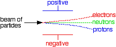 When beams of charged or uncharged particles pass through an electric field, they behave differently depending on their charge and mass. Protons, neutrons and electrons moving at the same velocity experience different degrees of deflection.