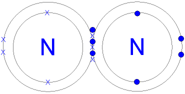 The two nitrogen atoms are joined by a triple covalent bond, consisting of one sigma bond and two pi bonds.
