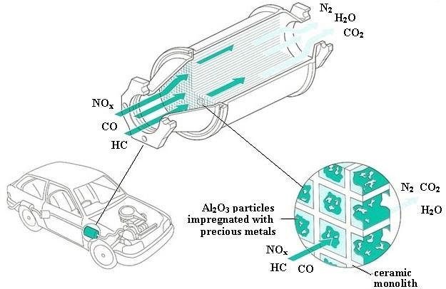 Key Reactions in a Catalytic Converter