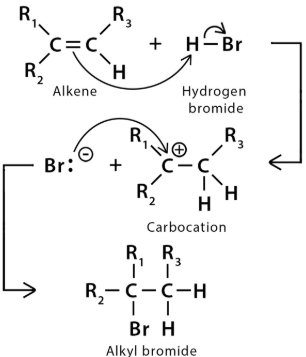 - Addition of hydrogen halides to alkenes