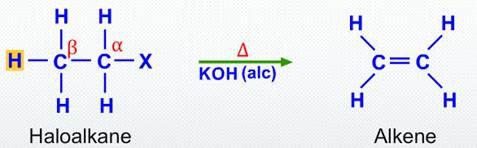 - Reaction of halogenoalkanes with \( \mathrm{OH^-} \)
