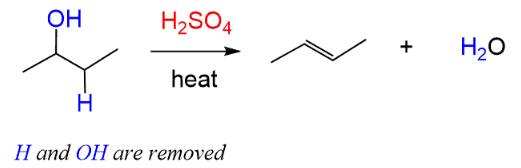 Dehydration is an elimination reaction in which water is removed from an alcohol to form an alkene.