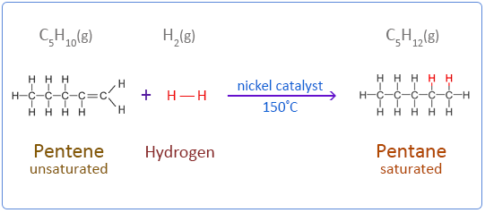 Hydrogenation is the addition of hydrogen across a C=C double bond to form an alkane.