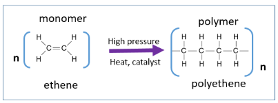 Addition polymerisation is a reaction in which many small molecules, called monomers, join together to form a long-chain molecule, called a polymer.