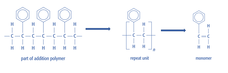 In addition polymerisation, the repeat unit of a polymer can be deduced directly from the structure of the alkene monomer.