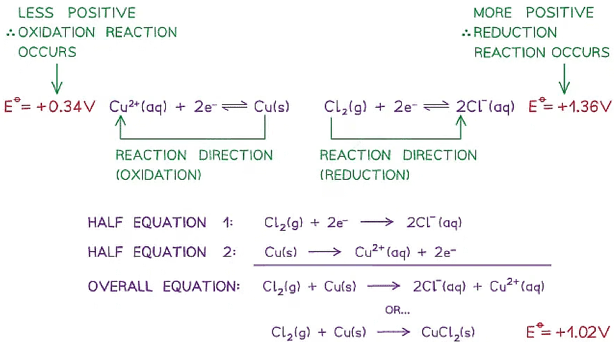 (b) predict the feasibility of a reactiondeduce from E⦵ values the relative reactivity of elements, compounds and ions as oxidising agents or as reducing agents