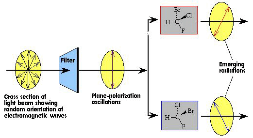 Optical isomers (enantiomers) affect plane polarised light in a characteristic way. You must be able to describe the effect of the two optical isomers of a single substance on plane polarised light.