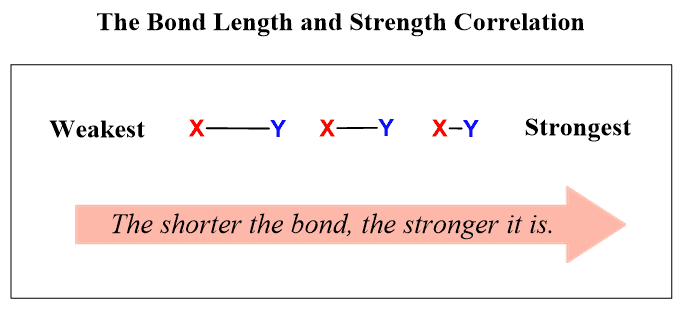 - Single bonds are longest (weakest), triple bonds are shortest (strongest).