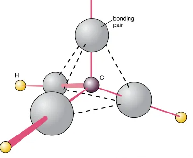 | Tetrahedral | 4 BP, 0 LP | Tetrahedral | \( 109.5^\circ \) | \( \mathrm{CH_4} \) |